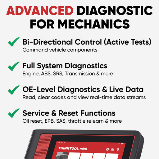 View full detailsThe THINKCAR ThinkTool Mini is a 6-inch professional OBD2 scanner featuring OE-level full-system diagnostics, bi-directional active tests, IMMO/Key...