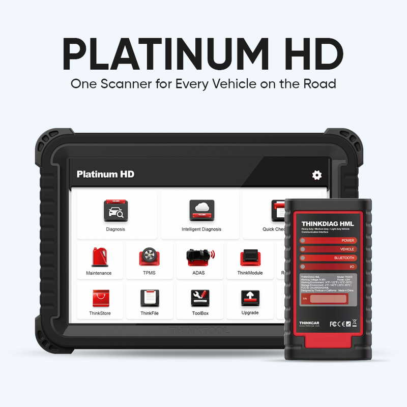 View full detailsThe THINKCAR Platinum HD is a 10-inch professional heavy-duty diagnostic tablet engineered for commercial trucks, passenger vehicles, and multi-bay...